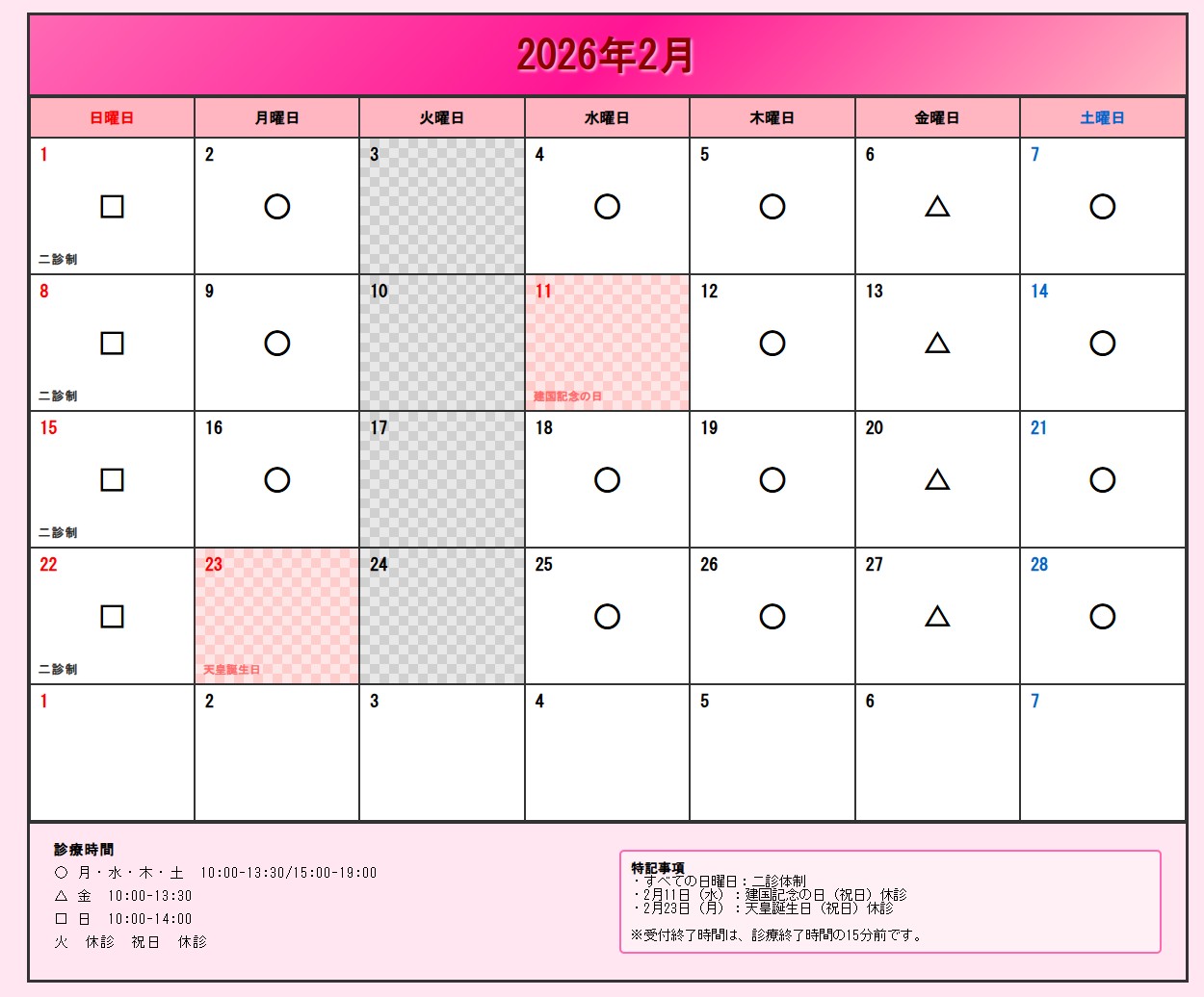 2026年2月診療カレンダー
